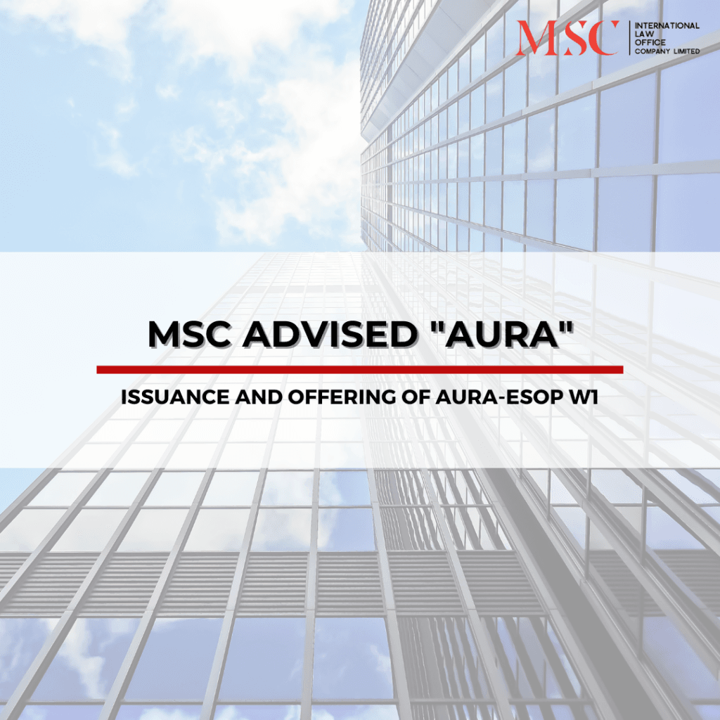 MSC เป็นที่ปรึกษา ”AURA” MSC เป็นที่ปรึกษา AURA ในการออกและเสนอขายใบสำคัญแสดงสิทธิที่จะซื้อหุ้นสามัญของบริษัท ให้แก่กรรมการ ผู้บริหารและพนักงานของบริษัท (AURA-ESOP W1) สำนักงานกฎหมาย MSC International Law Office ในฐานะที่ปรึกษาทางกฎหมาย ได้ให้คำปรึกษาแก่ บริษัท ออโรร่า ดีไซน์ จำกัด (มหาชน) (“AURA”) ในการออกและเสนอขายใบสำคัญแสดงสิทธิ AURA-ESOP W1 จำนวนทั้งสิ้น 20,300,000 หน่วย ซึ่งจัดสรรให้แก่กรรมการ ผู้บริหาร และพนักงานของบริษัท MSC ได้ให้คำปรึกษาแก่ AURA ในการกำหนดโครงสร้างและลักษณะของใบสำคัญแสดงสิทธิ การจัดทำข้อกำหนดและเงื่อนไข ตลอดจนกระบวนการขออนุมัติจากบริษัท นอกจากนี้ ธุรกรรมดังกล่าวยังรวมถึงการออกหุ้นสามัญใหม่จำนวน 20,300,000 หุ้น (มูลค่าที่ตราไว้หุ้นละ 1 บาท) เพื่อรองรับการใช้สิทธิภายใต้ใบสำคัญแสดงสิทธิ เมื่อวันที่ 19 ธันวาคม 2568 ซึ่งเป็นวันใช้สิทธิครั้งแรก ผู้ถือใบสำคัญแสดงสิทธิได้ใช้สิทธิรวมจำนวน 1,840,000 หน่วย ในราคาการใช้สิทธิหุ้นละ […]